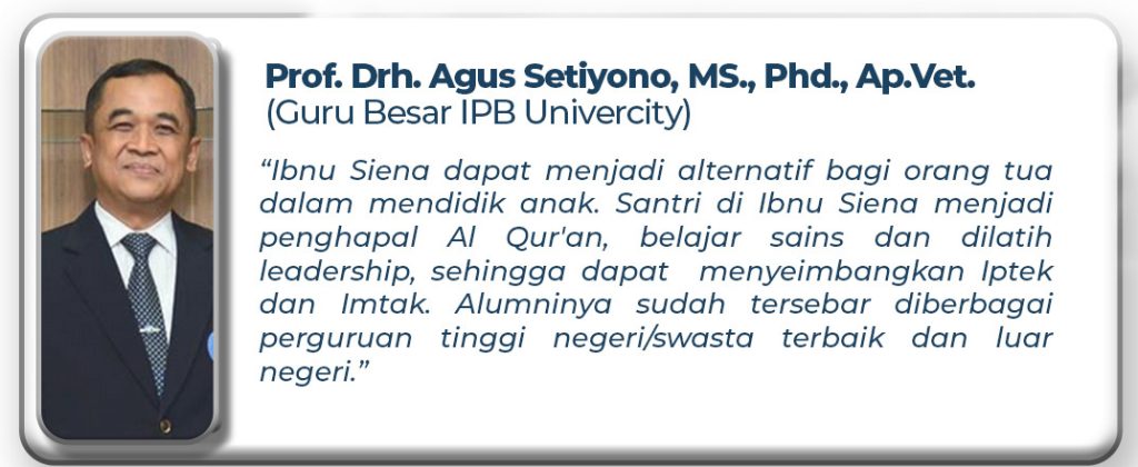 Ibnu Siena Nusantara Islamic Boarding School adalah Pesantren terpadu yang berfokus pada program tahfidzul qur’an, saintek, ulumul syar’i dan leadership. Didukung dengan pendidikan formal, Sekolah Islam Terpadu (SIT) jenjang SMP dan SMA, sehingga lulusan pesantren diharapkan mampu menjadi calon pemimpin bangsa.